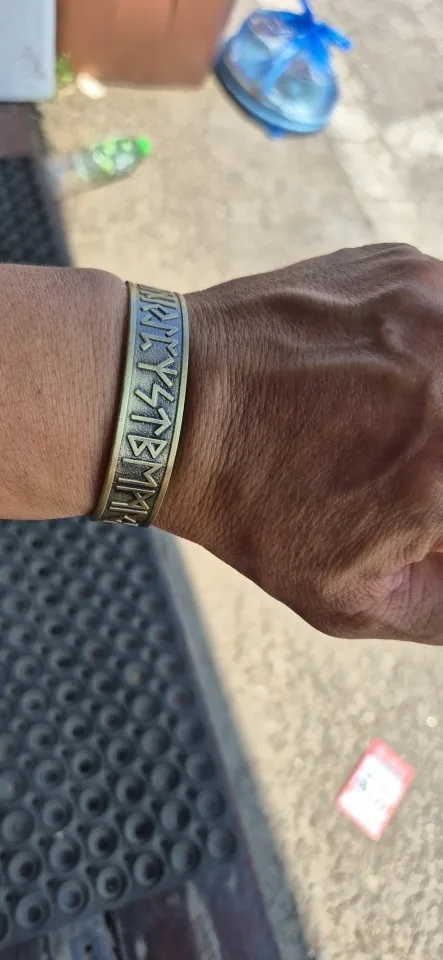 - Design: Open Cuff Bangle with Nordic Rune engraving.