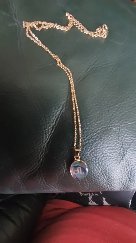 - Ontwerp: Ovale hanger met het dierenriemteken op een iriserende schelp.