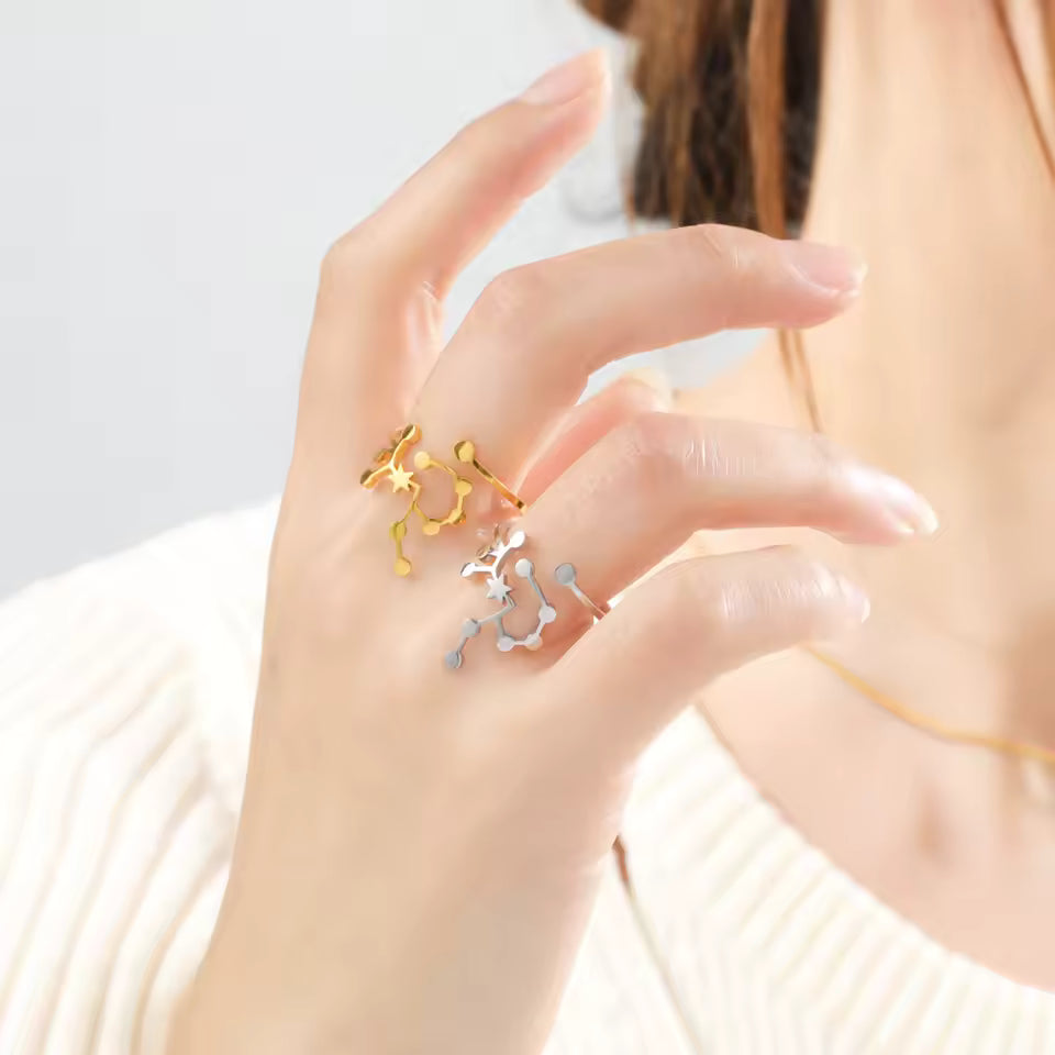 - Design: Open ring featuring the unique star map (constellation) of the chosen zodiac sign.